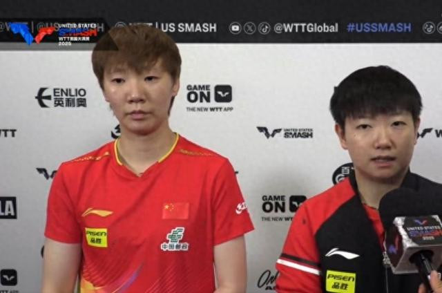 直播吧7月11日讯 在刚刚结束的WTT美国大满贯女双1/4决赛中,孙颖莎/王曼昱3-1击败申裕斌/杜凯琹,晋级四强。赛后,孙颖莎/王曼昱接受了记者采访。